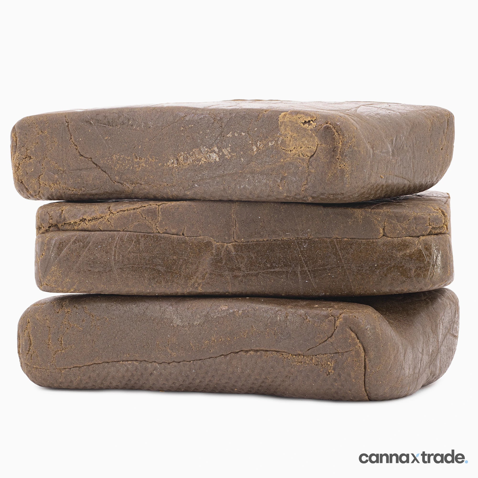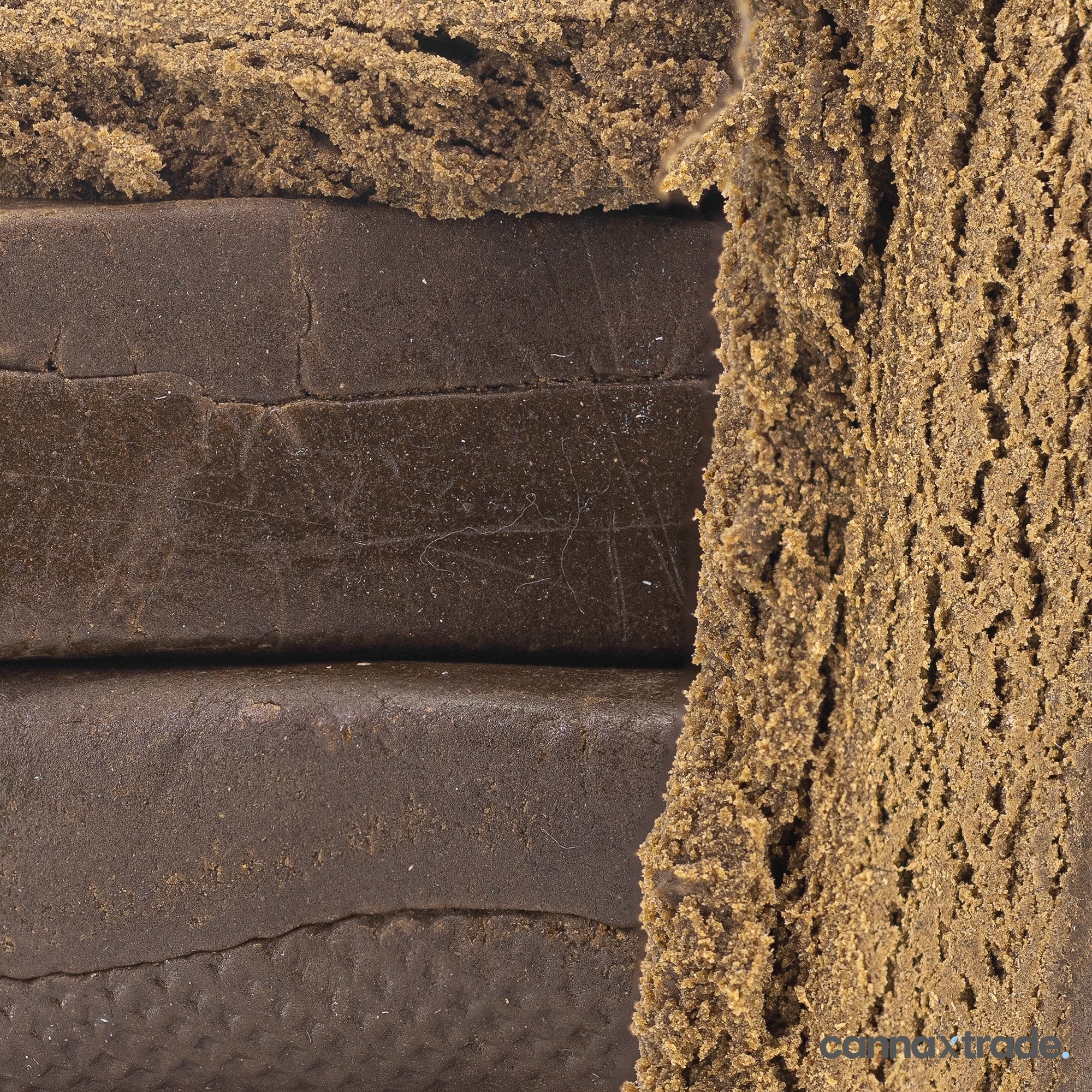 Ketama 25 hash shows a dense, traditionally pressed texture with medium softness and a rugged exterior